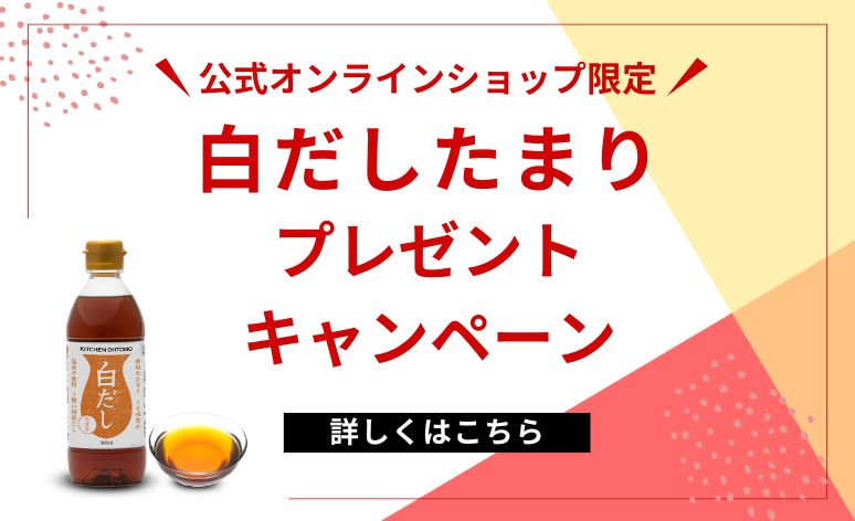 キッチン大友公式オンラインショップ限定「白だしたまりプレゼントキャンペーン」を開催いたします。