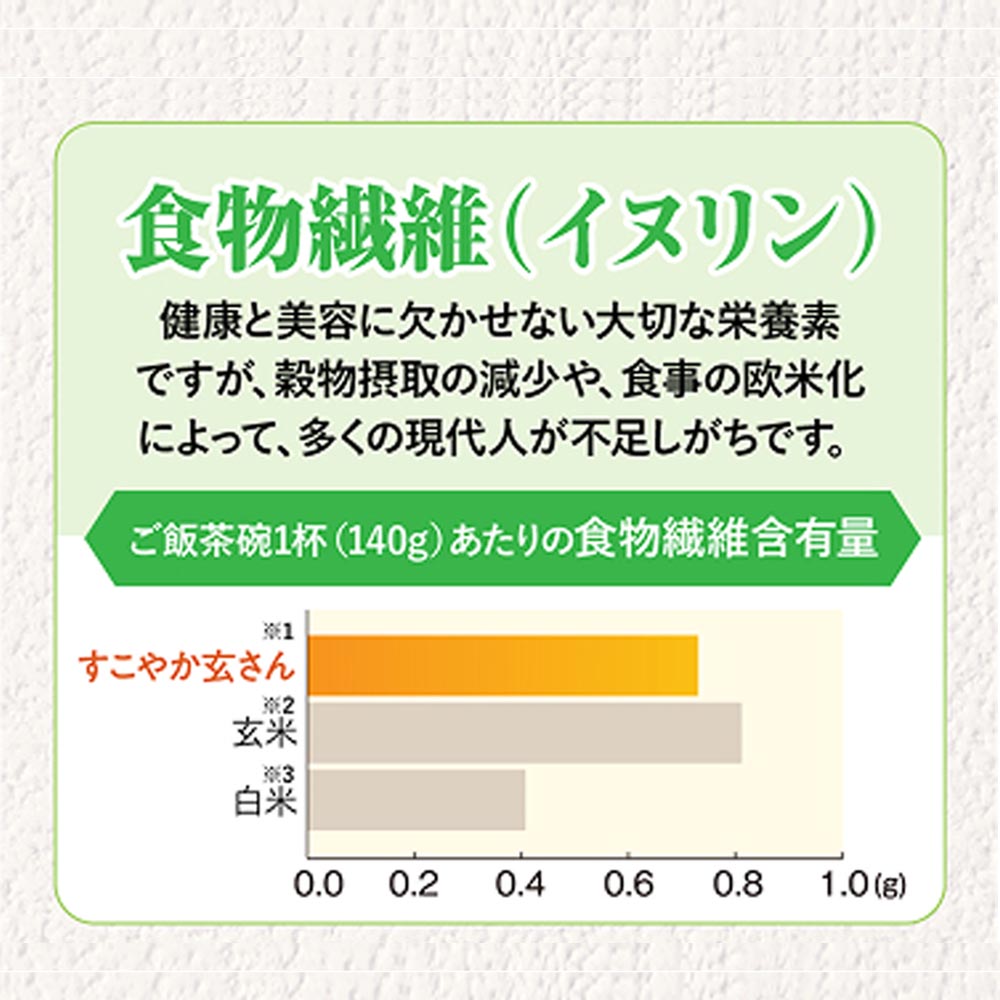アレルギーが心配な方や、アレルギー症状が重篤な方、薬を服用中あるいは通院中の方、食事制限をされている方、乳幼児・妊娠・授乳中の方は医師にご相談の上、召しあがってください。玄米成分と食物繊維を加えたお米です。食物繊維は過剰に摂取すると軟便秘になったり下痢を引き起こす可能性がございます。
